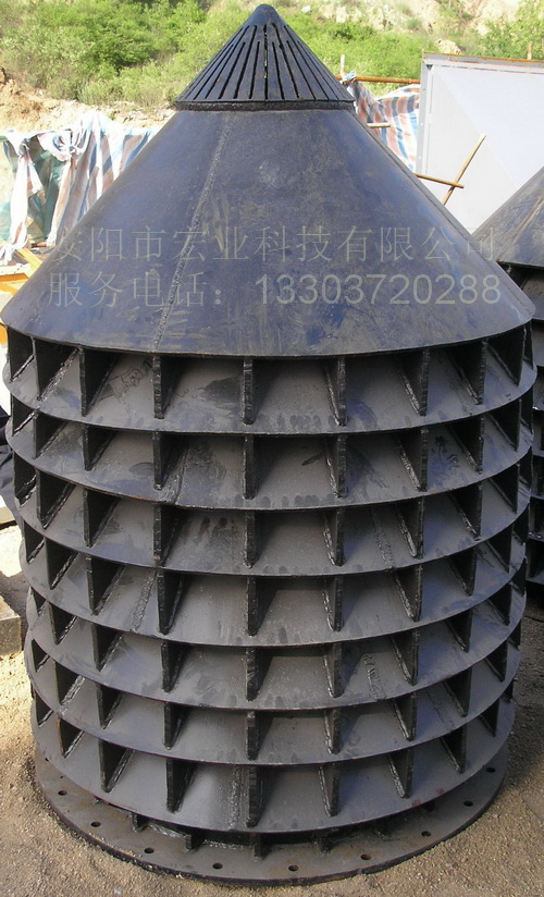 活性石灰豎窯在煅燒過程中,供風的大小和均勻程度,對石灰的活性度和燒結的生熟均勻至關重要,如果風不均勻就會出現(xiàn)偏燒,以至使過燒和燒不透現(xiàn)象發(fā)生,大大影響了活性石灰的質(zhì)量。我公司研制的計算機仿真風帽吸取了國內(nèi)外的經(jīng)驗,結合原燃料(石灰和焦炭)的質(zhì)量和塊度的大小,用計算機作概率仿真設計風帽。概率仿真風帽是一種新型的供助燃風的一進風帽,助燃風從下口環(huán)形進入,然后通過筒壁若干個風孔出口進入爐膛,所鼓風經(jīng)風帽不同孔徑的風口和不同高度可使所送風壓風量概率分布到窯內(nèi)整個截面。